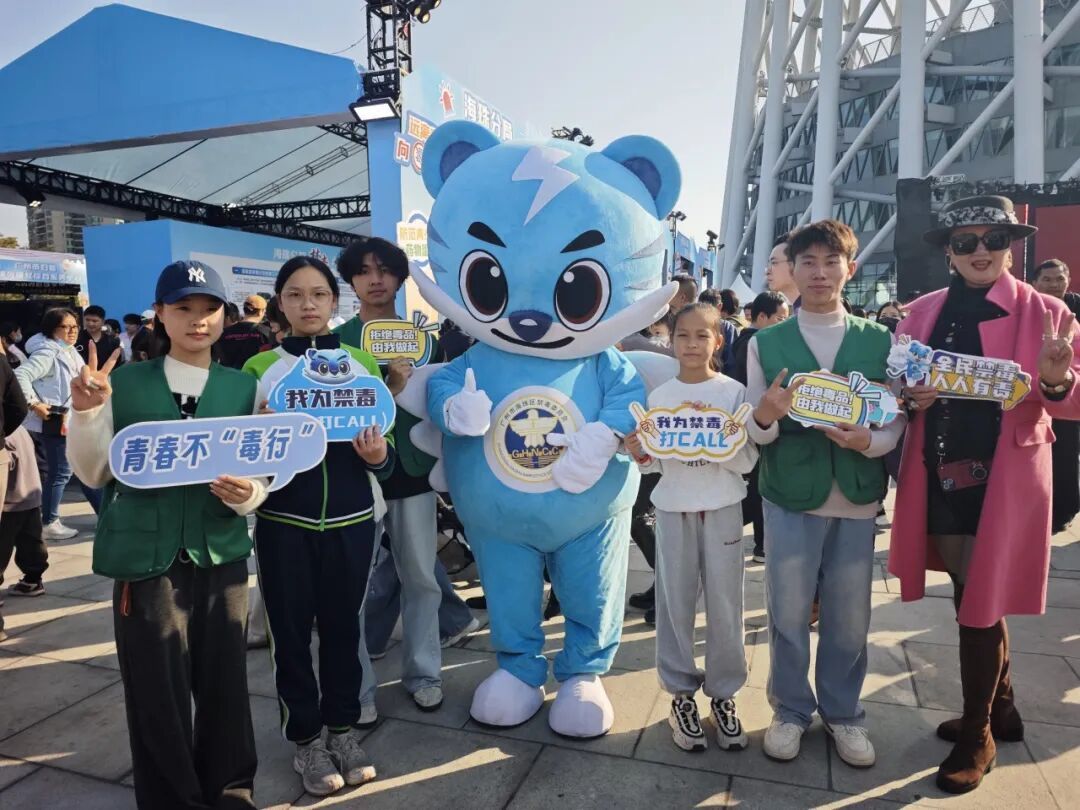 活动深度融合广州本土元素与禁毒IP,依托广州塔地标优势,将禁毒宣传融入游客游览体验。活动展位与广州塔景观相得益彰,成为兼具观赏与教育功能的宣传阵地。现场设立的“粤虎”主题打卡区,“粤虎”人偶成为“顶流”,游客纷纷合影并在社交平台分享,形成“线下体验 + 线上传播”的扩散效应,大幅延伸禁毒宣传半径,扩大受众范围。