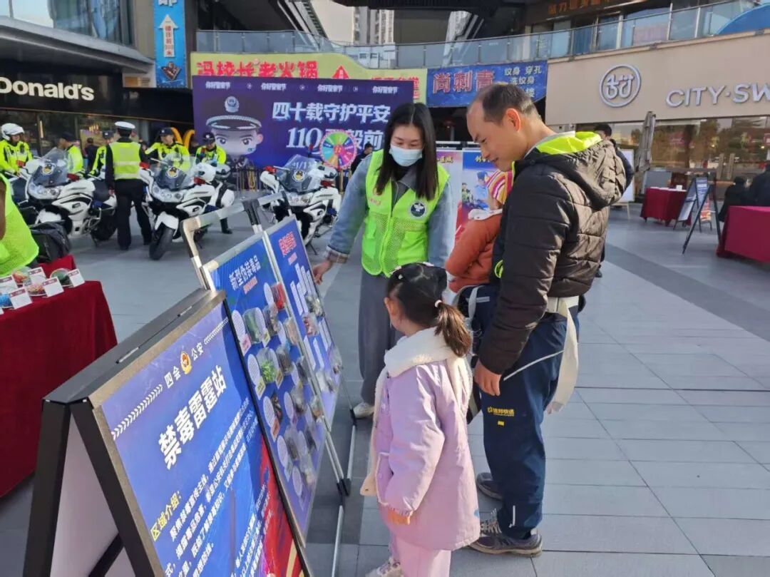 活动期间,民警与禁毒社工通过展示仿真毒品模型、派发禁毒宣传单、现场互动等方式,向群众介绍毒品的种类、特征及伪装手段,其中重点讲解了新型毒品对身体、家庭和社会带来的严重危害,并传授防毒技巧,如注意可疑物品的气味、包装特点及购买渠道等。与此同时,民警以鲜活案例为警示,提醒群众自觉遵守法律法规,不断提高对毒品的鉴别和防范能力,此外,还号召广大群众利用“110”报警平台,坚决与身边的涉毒违法行为作斗争,共同营造无毒、健康、和谐的社会环境。