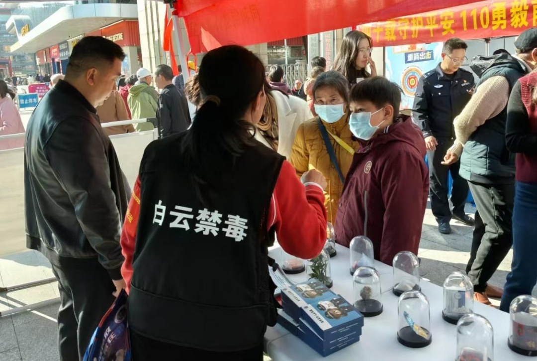 为庆祝第六个中国人民警察节,进一步密切警民关系,增强社区居民禁毒意识。2026年1月9日上午,在越秀区禁毒部门指导下,建设派出所、建设街道平安法治办、禁毒社工机构在建设街辖区榕树头广场开展禁毒宣传活动。